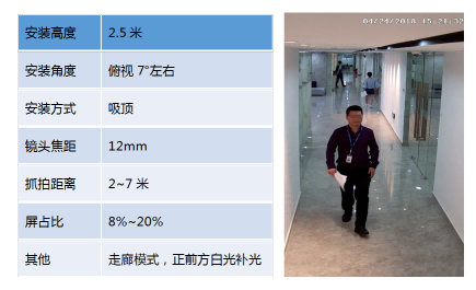 1、摄像机安装在通道正前方,正面抓拍人脸。