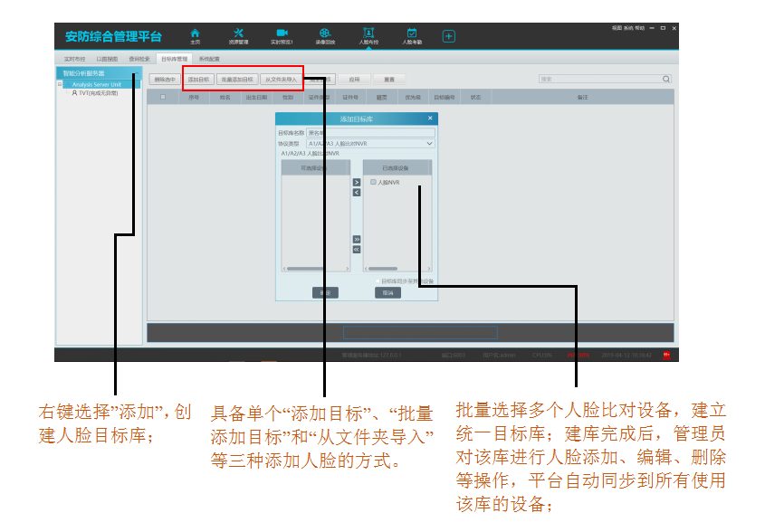3.人脸库上传与下发:总店和分店人脸库能够同步(非本地导入导出方式),分店只能对本店的人脸NVR进行操作,其他分店的NVR对其不可见;总店具备管理所有分店人脸库的能力;