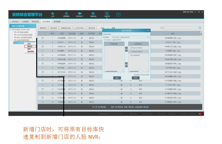 4.确认可以导入后,将收到的人脸照片录入特定的人脸库(该库可以同步到位于多个分店的NVR);