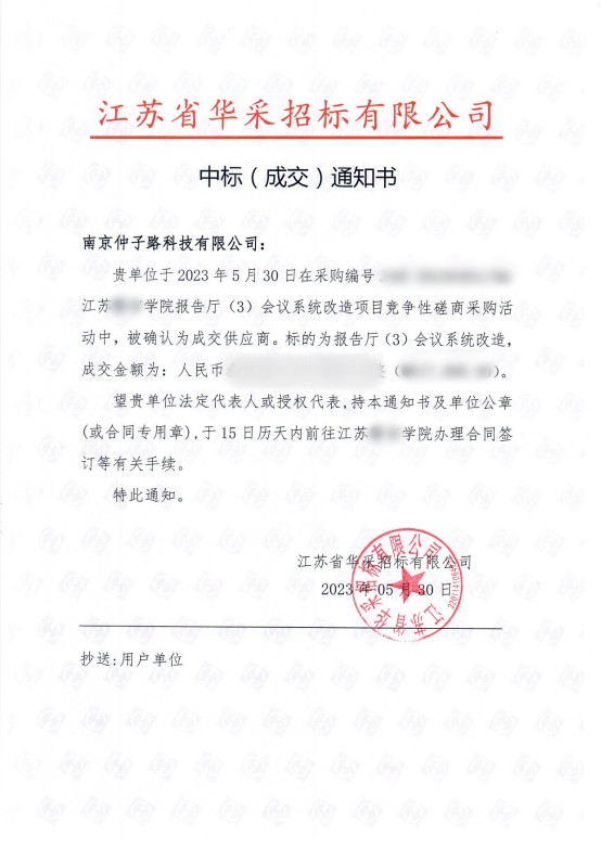 热烈庆祝我公司于2023年5月成功中标南京某学院报告厅会议系统改造项目。此次项目内容主要包括:中央控制系统、综合布线系统、机房建设系统等弱电系统项目内容。
