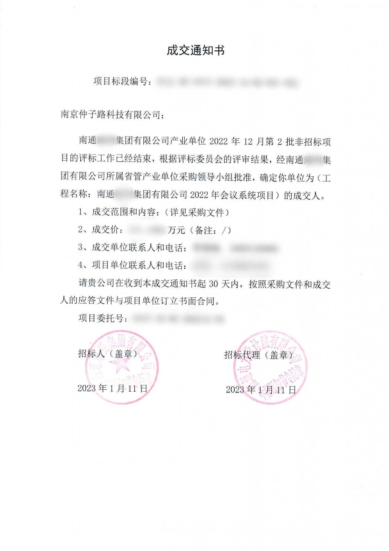 热烈庆祝我公司于2023年1月成功中标南通某集团有限公司2022年会议系统项目。此次项目内容主要包括:中央控制系统、综合布线系统、机房建设系统等弱电系统项目内容。