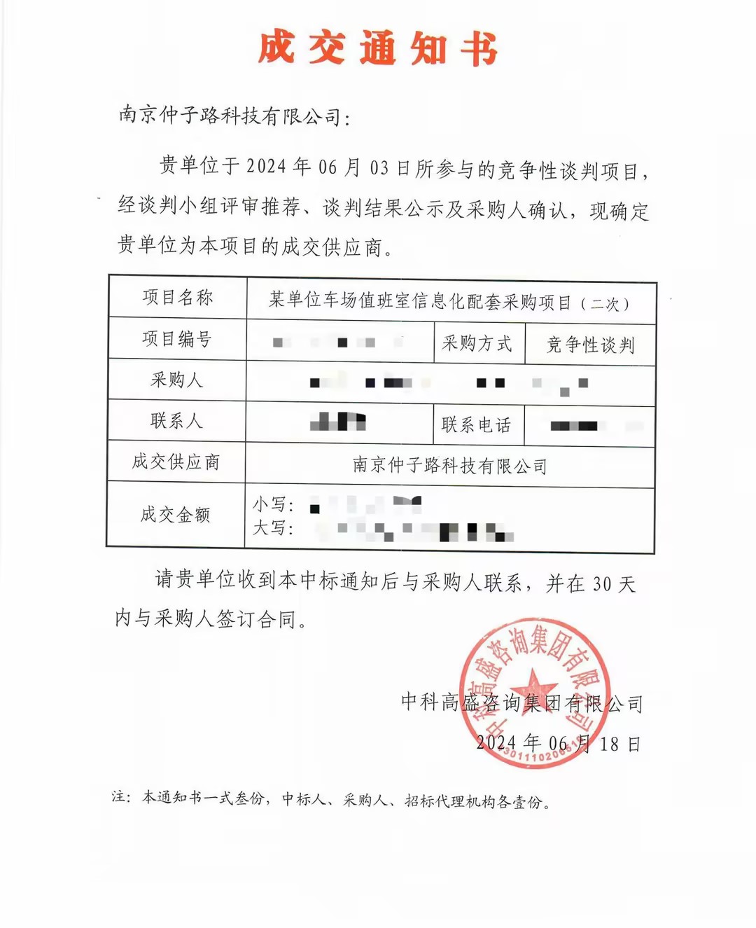 喜报|南京仲子路科技有限公司荣获重要项目成交喜讯