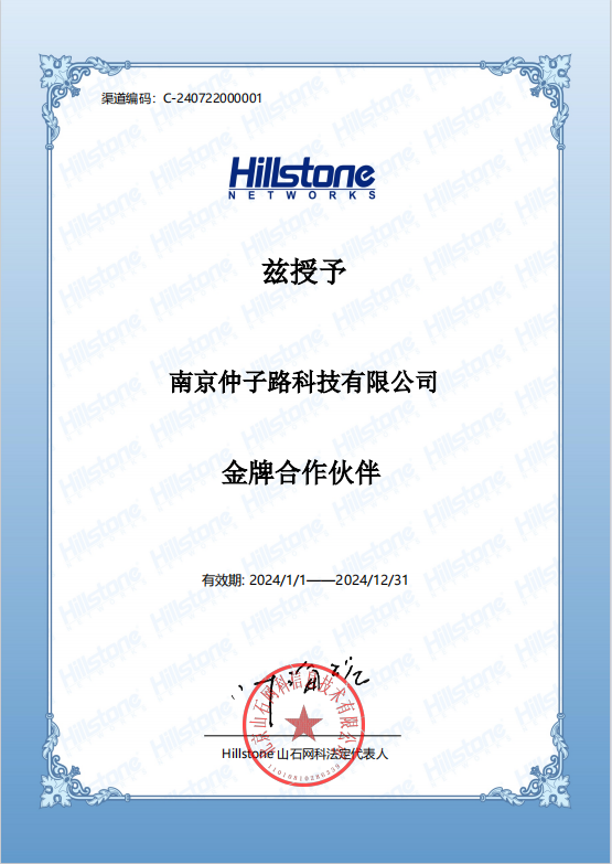 南京仲子路科技有限公司(以下简称“仲子路科技”)与山石网科通信技术股份有限公司(以下简称“山石网科”)于2024年1月1日正式签署授权合作协议。本次合作旨在为仲子路科技的网络信息系统增添安全屏障,提升仲子路科技在智能化弱电行业的服务水平,为客户提供有保障的网络信息服务,以实际行动回馈每一位客户的信赖与支持。