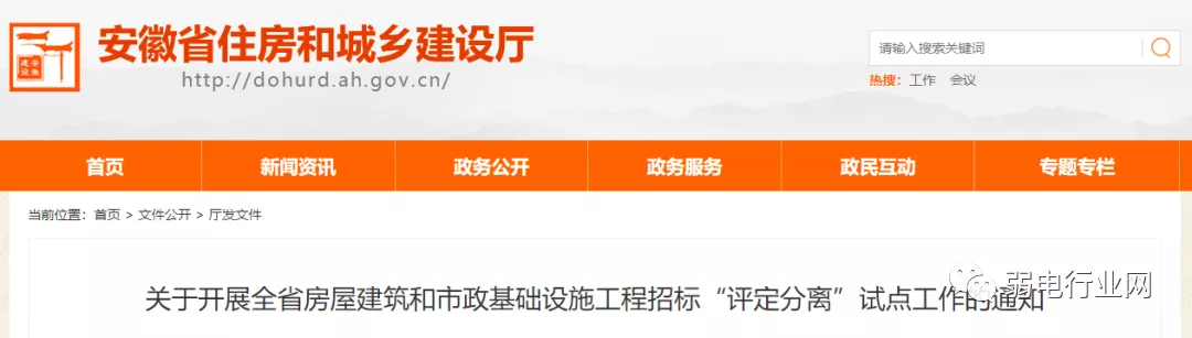 近日,安徽省住建厅发布《关于开展全省房屋建筑和市政基础设施工程招标“评定分离”试点工作的通知》。明确: