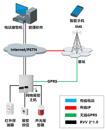 支持3网6中心:有线网络、无线GPRS、电话线,每种通信方式可将报警信息上传至两个独立的平台,并可实现冗余备份上报