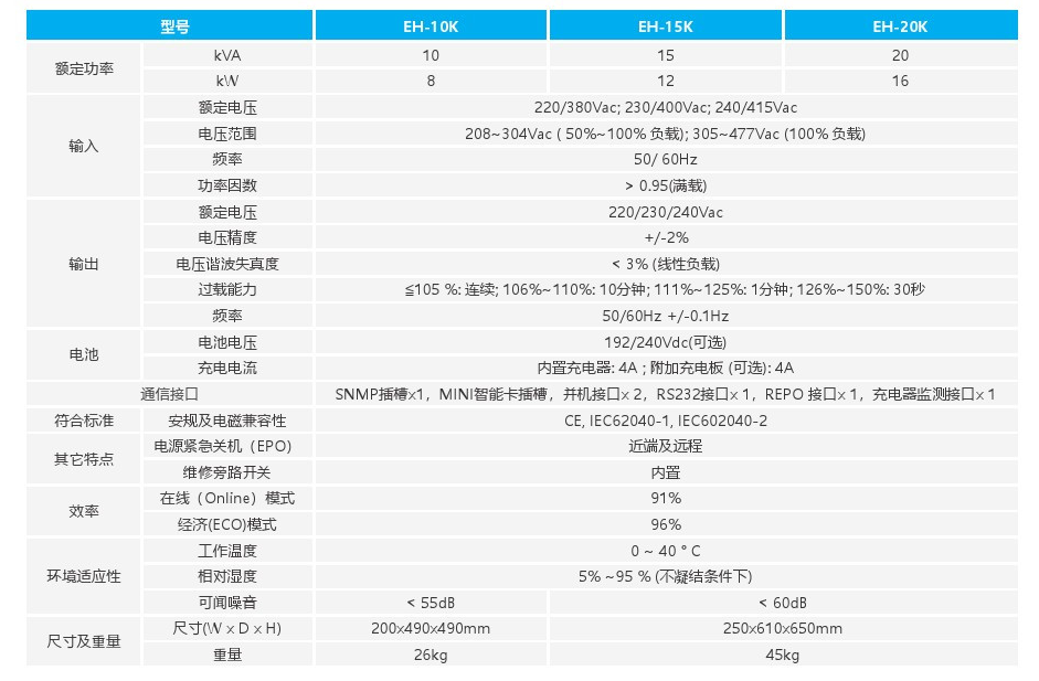 三进单出10/15/20kVA是纯在线双变换三进单出UPS产品