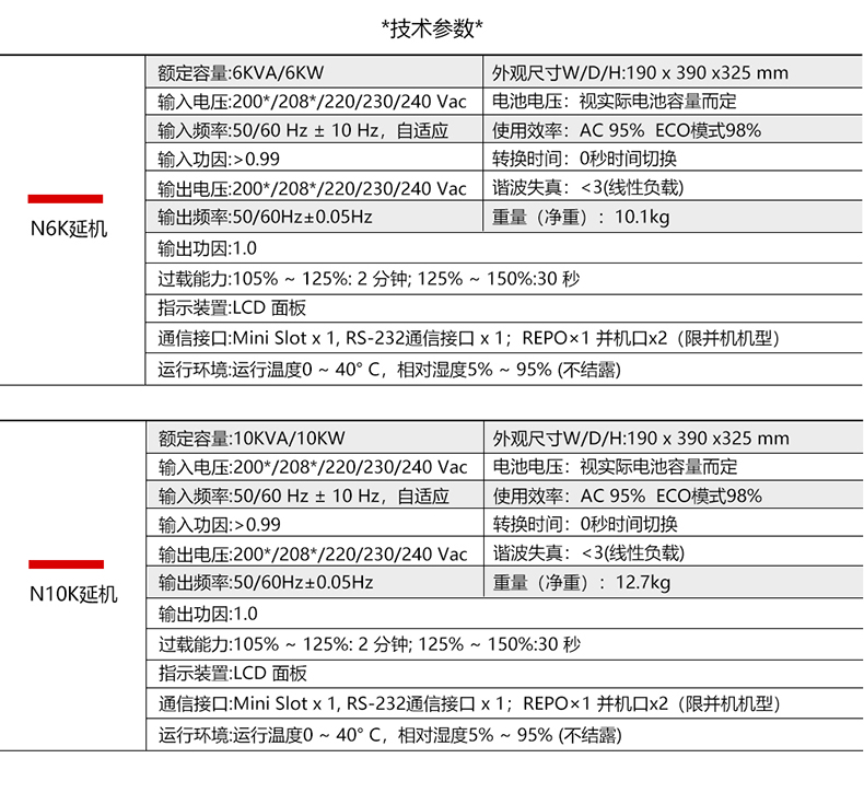 N系列UPS 6/10KVA,具备良好的带载能力,整机效率高达95%