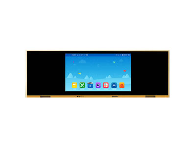 两侧纯平面板,中间液晶触控显示设备,材质为专用防爆AG玻璃,普通粉笔易书写;一键多媒体功能,具有独特的隐藏式音箱设计结构,圆弧角设计包边,更安全可靠;防水防尘,防眩光,呵护视力,主机具有较强的防盗功能,